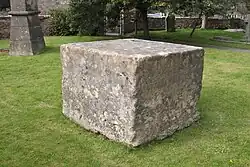 Outside the church is a 5 feet (1.5 m) cube of dressed stone, from Dundry Main Road South Quarry. It known as the dole table, which was used to give alms to the poor.[7] There is also a 3 metres (9.8 ft) high churchyard cross on an octagonal base. The head of the cross was installed in the 19th century to the same design as one which had previously occupied the site. It has been scheduled as an ancient monument.[8]