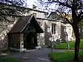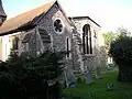 The flint has dressing of stone and Roman brick with a tile roof.[1] It consists of a nave with a south aisle and a chancel with a south chapel. There is a belfry over the west end of the nave.[1] There is a ring of bells which were recast in 1957 to make them lighter as the previous bells, from 1892, were too heavy for the frame.[3]