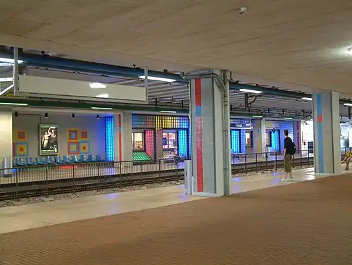 The station opened, as a railway station, on 22 May 1977 as part of the Zoetermeerlijn, operating Zoetermeer Stadslijn services. The station was originally called Centrum Oost in connection with Centrum West station.[1] However this name changed as it could confuse passengers between this station and Zoetermeer Oost station.[2] The station building work didn't finish until 1985, and because of safety concerns, the station was again rebuilt in 1990 to let more sunlight in. The train station closed on 3 June 2006 and reopened as a RandstadRail station on 29 October 2006 for the HTM tram services (4), and on 20 October 2007 for tram service 3. The station was renovated in 2019.[3]