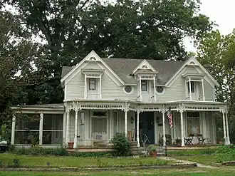 The Steamboat House is an historic house at 601 North Front Street in Dardanelle, Arkansas. A two-story wood-frame structure, it has cross-gabled roof and weatherboard siding. It is trimmed in the Carpenter Gothic style, with an open single-story porch that has turned posts and a spindled frieze. On the second floor there are doors leading to small balconies with similar decoration. The house was built about 1890, and is a local example of the Steamboat gothic style.[2]