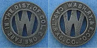 A second line would run along Good Hope Road SE to the District boundary.[9] The line was built during the Panic of 1896 despite 18 months of opposition from the Anacostia and Potomac River.[23] In 1897 it experimented with the "Brown System", which used magnets in boxes to relay power instead of overhead or underground lines, and with double trolley lines over the Navy Yard Bridge. Both were failures.[1]