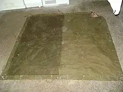 Damaged Militärblachen were once identified by a corner with a yellow color and referred to as "B-Blache" or "Ausschussblache" (Surplus). Today, all tarps with double print are surplus, since new tarps only have camouflage print on one side.