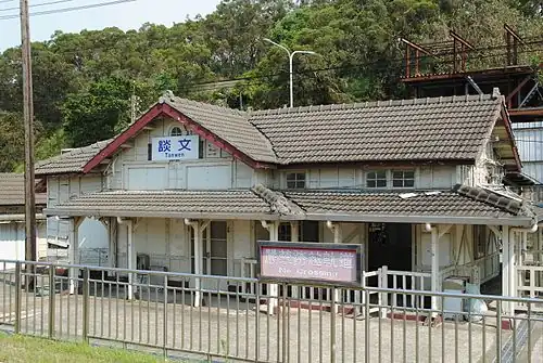 Tanwen (Chinese: 談文車站; Hanyu Pinyin: Tánwén Chēzhàn; Tongyong Pinyin: Tánwún Chejhàn) is a railway station on the Taiwan Railways Administration West Coast line (Coastal line) located in Zaoqiao Township, Miaoli County, Taiwan.