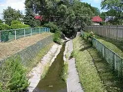 In June 2005, the city performed a water quality study that revealed the presence of high levels of E. coli bacteria and other contaminants.[4] Periodic spills from adjacent industrial lands have also increased contamination. Due to the poor water quality and the engineered riverbanks, the creek shows little signs of life.