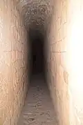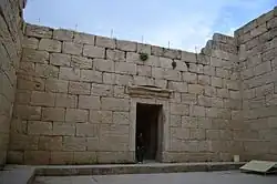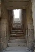 The Temple of Anahita is a large rectangular room in the shape of a cube in a depression 6 meters above the ground, each side of which is nearly 14 meters. It is built of carved stones without mortar, double-walled, and in the Achaemenid architectural style. These stones are connected to each other with iron fasteners. A staircase from the palace was also connected to this temple. The temple has no roof and the purpose was to bring the water of the Shapur River, which flows 250 meters away, into the temple, so that after flowing inside the temple, it would be discharged through a Qanat.[8][9]