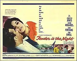 Tender Is the Night is a 1962 American film directed by Henry King and starring Jennifer Jones and Jason Robards, Jr. King's last film, it is based on the 1934 novel of the same name by F. Scott Fitzgerald.