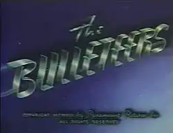 The Bulleteers (1942) is the fifth of seventeen animated Technicolor short films based upon the DC Comics character of Superman, originally created by Jerry Siegel & Joe Shuster. This animated short was created by Fleischer Studios. The story runs about eight minutes and covers Superman's adventures as he defends the city against a villainous gang called "The Bulleteers", who are equipped with a bullet-shaped rocket car. It was originally released on March 27, 1942.[1]
