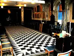 The Cloisters was commandeered by the Army during the Second World War and suffered damage. By 1948 Miss Lawrence found it increasingly difficult to maintain the building and to repair the damage caused by the Army. She initially offered it to the local Council, who turned it down. Eventually, she offered it to the local Freemasons who accepted it, turning it into the North Hertfordshire Masonic Centre. About sixty Masonic lodges and 'side degrees' meet at The Cloisters, and the centre is run and maintained by an elected Board of Trustees, The Lawrence Cloisters Trust. A Craft Lodge, the 'Cloisters Lodge No 7100' was formed there in 1951 to commemorate Miss Lawrence's donation of the building to Hertfordshire Freemasons.[6][7]