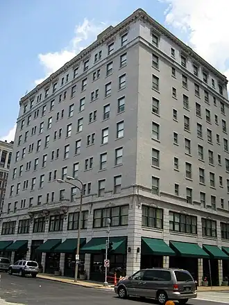First opened near the end of September, 1914, the hotel is one of St. Louis' few hotels which date from before World War I. The building's Renaissance Revival design is an example of common styles in St. Louis architecture in the 1920s. The hotel was built to serve middle-class guests, but it had advanced fireproofing, two restaurants, and a rathskeller.[3]