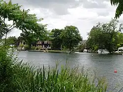 The Island is an inhabited island in the River Thames in England on the reach above Bell Weir Lock, a part of the Hythe End part of Wraysbury village and civil parish, Berkshire. It is connected to that side of the river and although part of Berkshire was, like the village, part of Buckinghamshire before 1974.