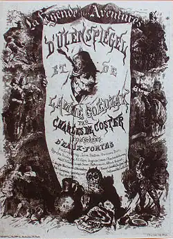 De Coster was one of many 19th-century nationalist writers who made use of – and considerably adapted and changed – pre-existing folk tales. (Prominent others of this kind include the German Grimm Brothers and the Finnish Elias Lönnrot). In this case, Thyl Ulenspiegel — whose adventures were first written of in 1510 and were set in 14th-century Lower Saxony — is moved westwards in space and forward in time, and made into a Protestant hero of the time of the Dutch War of Independence.