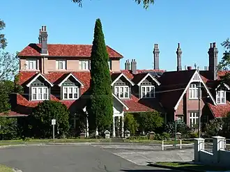 In 1922, the Theosophical Society rented The Manor for a community of some fifty people, headed by Charles Leadbeater, a claimed clairvoyant, and a major figure in the Society. The Manor became an important centre for the Society and was regarded as a great "occult forcing-house".[2] The English writer Mary Lutyens stayed at The Manor in the 1920s and described it as "a huge and hideous villa".[3] The young Indian Jiddu Krishnamurti, who was presented as the new "World Teacher", stayed in nearby David Street with his brother Nitya while Lutyens—his eventual biographer—stayed at The Manor.[4] The Theosophical Society bought the house in 1925, holding it under a trust deed. In 1926 they started the radio station 2GB; the initials stood for Giordano Bruno. The station operated from The Manor for a few years.[1] In 1951, they established The Manor Foundation Ltd. to own and run the house. As of 2013, the Society used The Manor.[5]