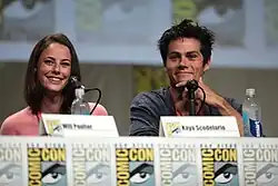 On October 11, 2013, it was reported that Twentieth Century Fox had acquired the rights to the second book, The Scorch Trials. A screenplay was written by T. S. Nowlin, with director Wes Ball supervising the scriptwriting.[69] The sequel was released on September 18, 2015.[70][71] On July 25, 2014, Ball announced at San Diego Comic-Con that filming for the sequel would commence sometime between March and May 2015, should The Maze Runner become a success when it hits the theaters.[72] However, two weeks prior to the film's release 20th Century Fox decided to move ahead with the sequel and pre-production began in early September 2014 in New Mexico.[73] Cast members Dylan O'Brien, Kaya Scodelario, Thomas Brodie-Sangster, Ki-Hong Lee, and Patricia Clarkson reprised their roles for the sequel, as did director Wes Ball. It was announced that Aidan Gillen would be joining the film to play Janson ("Rat-Man"),[74] as was Rosa Salazar who portrayed Brenda,[75] Jacob Lofland who starred as Aris Jones,[76] and Giancarlo Esposito who played Jorge Gallaraga.[77]