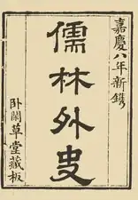 The earliest printed editions of the novel did not survive, and some critics have raised questions about the reliability of later printed editions.[12] The earliest extant edition of The Scholars is the 1803 Wo Xian Caotang edition, commonly referred to as the "Wo" edition. This was followed in 1816 by the Qingjiang Pu Zhu Li Ge ("Qing") and Yi Gu Tang ("Yi") editions, which are both essentially copies of the Wo edition. The Suzhou Fan Shi Chao ("Chao") edition was the personal reading edition of a Qing official. While this edition was quite rare, the following Suzhou Qun Yu Ji ("Su") edition was quite popular, and there are many extant versions of it in circulation. The first Shen Bao Guan ("Shen One") edition corrected the mistakes of previous editions, and the second Shen Bao Guan edition ("Shen Two") carried these corrections further.[13]