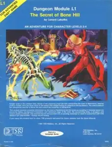 The Secret of Bone Hill was written by Len Lakofka and published by TSR in 1981 as a 32-page booklet with an outer folder, and a cover illustration by Bill Willingham.[2] This adventure is continued in L2: The Assassin's Knot, and L3: Deep Dwarven Delve.