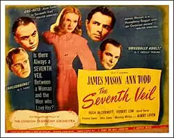 The Seventh Veil is a 1945 British melodrama film directed by Compton Bennett and starring James Mason and Ann Todd. It was made by Ortus Films (a company established by producer Sydney Box) and released through General Film Distributors in the UK and Universal Pictures in the United States. The screenplay concerns Francesca (Todd), a brilliant concert pianist who attempts suicide while she is being treated for a disabling delusional disorder centred on her hands that makes it impossible for her to play. A psychiatrist uses hypnosis to uncover the source of her crippling fear and to reveal, one by one, the relationships that have enriched and troubled her life. When the last "veil" is removed, her mind is clear. She regains the ability to play and knows whom she loves best. The film's title comes from the metaphor, attributed to the fictional psychiatrist, that while Salome removed all her veils willingly, human beings fiercely protect the seventh and last veil that hides their deepest secrets, and will only reveal themselves completely under narcosis.