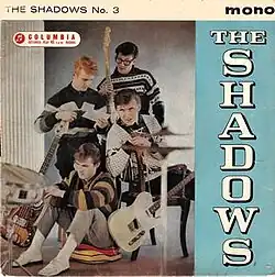 The Shadows No. 3 is an extended play 45 rpm record released in 1961 by The Shadows. It was released on Columbia Records/EMI Records as SEG 8166 in mono and reached #13 in the UK EP charts in August 1962 and stayed on the chart for 4 weeks.[1] The cover picture is the same as The Shadows album cover.