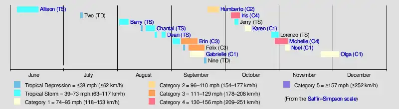 | Timeline of the 2001 Atlantic hurricane season | |||||