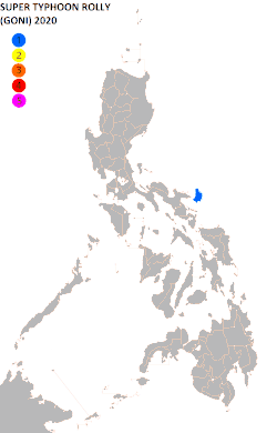 - ^ "Severe Weather Bulletin #13 for Super Typhoon 'Rolly' (Goni)" (PDF). PAGASA. October 31, 2020. Archived from the original (PDF) on April 3, 2015. Retrieved October 31, 2020. Alt URL