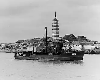 USS John Blish was a Patrol Craft Sweeper (PCS) of the PCS-1376-Class, five of which were converted to small hydrographic survey vessels designated AGS and later coastal survey vessels, AGSc, that conducted hydrographic surveys for the United States Navy during and immediately after the Second World War.[note 1] The small PCS type vessels assigned to the United States Navy Hydrographic Office missions conducted pre invasion surveys, sometimes under fire, with the survey crews erecting signals for survey and later navigation, laying buoys and placing lights.