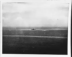 After arriving at Manus, Petrof Bay was assigned to Task Unit 77.4.5, the Reinforcement Carrier Group, and she was yet again under the flag of Rear Admiral Henderson. During her stay at Manus, Captain Ralph Sperry Clarke took over command of the vessel. She departed Manus Harbor on 19 November, arriving in the traffic lanes leading to Leyte on 23 November, whereupon she began operations providing air cover for convoys proceeding to and departing from the Philippines, a task necessary due to the convoys being harassed with irritating frequency by Japanese aircraft based on Mindanao. She continued these operations until the end of the year, when she was detached from Task Group 77.3, and joined up with Task Force 79, Vice Admiral Theodore Stark Wilkinson's Lingayen Attack Force, in support of the Invasion of Lingayen Gulf. She provided air cover for the attack transports of the task force as they proceeded to Lingayen Gulf, and gave close air support as they landed.[26] The task force came under intense kamikaze attack as it proceeded up the South China Sea to northern Luzon, sinking her sister Ommaney Bay on 4 January 1945, and damaging several other carriers. This forced Petrof Bay into assuming double duty, taking on some of their assigned tasks.[27]