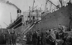 König Wilhelm II was a steel-hulled screw steamer launched on 20 July 1907 at Stettin, Germany, by Vulcan Aktiengesellschaft. Built for the transatlantic passenger trade, König Wilhelm II operated between Hamburg, Germany, and Buenos Aires, Argentina, under the house flag of the Hamburg-Amerika Line, until the outset of World War I in 1914. Voluntarily interned at Hoboken, New Jersey, to avoid being captured by the Royal Navy, the passenger liner was seized after the United States entered the war on 6 April 1917, as were all other German vessels in American ports.