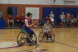 The Lady Movin' Mavs were initially a sports club at UTA and transitioned to full intercollegiate team status once sufficient funds had been raised.[7] It plays under the auspices of the National Wheelchair Basketball Association (NWBA), which organizes intercollegiate wheelchair basketball tournaments across the United States. During the 2014–15 season, the team's roster grew from five to nine players, which allowed the team greater flexibility with strategy and opportunities to rest players.[8] That season, the team played in the National Intercollegiate Wheelchair Basketball Tournament (NIWBT), where it lost to the University of Illinois in its first game and then lost to the University of Wisconsin–Whitewater in the third-place game.[9]