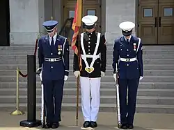 - The Command's responsibilities of conducting ceremonies for the President of the United States and foreign dignitaries, Medal of Honor presentations, military funerals and guarding the Tomb of the Unknown Soldier are represented by the gold star.