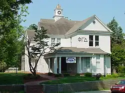 Coby Hall was donated to the university in 1990 by David Brubaker in memory of his wife, Coby Stockard Brubaker. Built by John Simpson on the site of his earlier home in 1843, the Simpson House/Irvine Place, as it had been known, later was purchased by George W. Foster, builder of Courtview, for his daughter, Virginia, and her husband, James B. Irvine. The University Admissions office is located in the building. Coby Hall is listed in the National Register of Historic Places.[15]