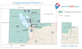 Utah's 1st congressional district serves the northern area of Utah, including the cities of Ogden, Logan, Layton, Clearfield, parts of Park City and Salt Lake City, and the northern half of the Great Salt Lake.