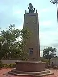 The historian Susan Bayly says that Kattabomman is considered a Robin Hood-like figure in local folklore and is the subject of several traditional narrative ballads in the kummi verse form. The site of his execution at Kayathar has become a "powerful local shrine" and at one time sheep were sacrificed there.[10] The Tamil Nadu government rebuilt the Panchalankurichi fort in 1974.[8] The Government of Tamil Nadu maintains a memorial at Kayathar and the remnants of the old fort at Panchalankurichi is protected by the Archaeological Survey of India.[11][12] In 2006, the Tirunelveli district administration organised a festival at Panchalankurichi on his birth anniversary.[13]