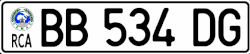 Central African license plates have known different formats since the 1960s. The first plates were on a black background with silver characters. In the 80s, the plates pass on a blue background. Since September 1, 2006, the country has adopted CEMAC plates with black characters on a white background.[1]