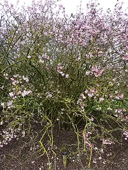 Viburnum × bodnantense, the Bodnant viburnum, is a Group of hybrid flowering plant cultivars of garden origin. They originate in a cross between V. farreri and V. grandiflorum[1] made by Charles Puddle, head gardener to Lord Aberconway at Bodnant Garden, Wales around 1935.[2]