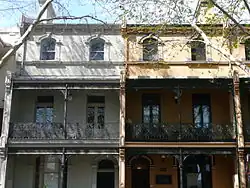 Redevelopment of the street during the early 1970s caused much controversy. Residents opposed the building of a forty-five storey complex and insisted that provision be made for middle and low income wage earners to remain living there. In response the NSW Builders Labourers Federation placed a green ban in 1971, bringing demolitions to a halt.[2] To prevent work being done by non-union labour, squatters moved into disused houses after residents were forced out. In January 1974 a confrontation occurred and all residents (except one, Mick Fowler) were evicted from the street. After continued campaigning the redevelopment design was amended and while low-cost housing was lost, some protection was applied to houses on the basis of heritage values.[3]