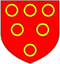 Arms of Vipont: Gules, six annulets or. These arms were later quartered by Baron Clifford