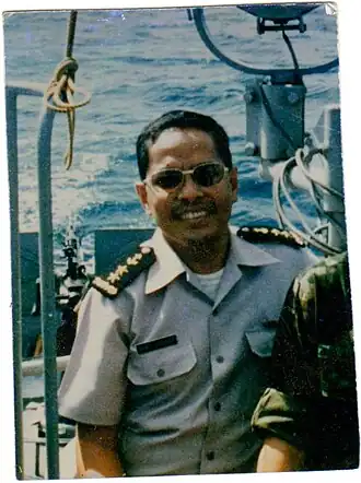 Admiral Vong Sarendy was credited for maintaining high levels of efficiency, discipline and morale in the ranks of the Khmer National Navy during the Cambodian Civil War, mainly due to sufficient rice rations, good leadership in the field and prompt payment of wages.[3] Unlike the Cambodian Army and the Khmer Air Force (KAF), the MNK was not seriously handicapped by corruption – despite the fact that Lieutenant General Sosthène Fernandez, the FANK Chief-of-Staff and Commander-in-Chief of the ANK, did used the Navy to collect protection money for guarding river transport services in which his family had investments[4] –, constant changes in command, or military incompetence, though it did faced severe budgetary restraints after U.S. financial aid was slashed in 1973.