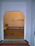 The column-free refectory is a true masterpiece of the national architectural style. The structure of the refectory is one of the oldest in the group of monuments of the 17th century. The influence of this structure on a number of other monuments is undoubted. Its planning structure is repeated in the refectory of the Michael Monastery in Kyiv. In other cases, there are minor differences, for example, in the refectory of the Vydubychi Monastery. But the general scheme is preserved here: the church building is adjoined from the west by a dining hall, and auxiliary rooms for cooking and storing food are adjacent to it.[4][5]