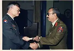 Brigadier General Waleed Ahmad Samkari (العميد وليد أحمد السمكري) was director of the Royal Maintenance Corps (سلاح الصيانة الملكي) of the Jordanian Armed Forces responsible for supporting continuous operations for the military.[1] During his command, his unit underwent a change in adopting modern military organization.[2] Samkari helped with getting the ZSU-23-4 "Shilka" and the 9K33 Osa from Russia and the former Soviet Union. He influenced improving military collaboration between Jordan and Turkey. He had been educated in Turkey and was fluent in the language.