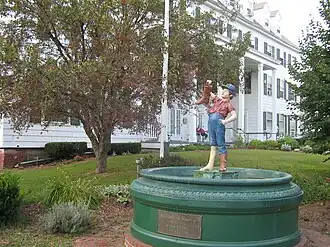 Wallingford is a small agricultural community in the Otter Creek valley of central Vermont, 10 miles (16 km) south of Rutland. It was settled in the 1770s, with its main village established on Roaring Brook, a tributary of Otter Creek. It developed as an agricultural area, and as a stop on the north–south stagecoach route, now US 7. The village center developed as a commercial center, serving the area farmers, and housed local industries such as sawmills, tanneries, and a blacksmith. The stage route was the only significant road in the village, with School Street (Vermont Route 140) emerging later as a major cross street, running east–west north of Roaring Brook. In 1835, Lyman Batcheller opened a pitchfork manufactory, which expanded significantly after the railroad arrived 1852. These industries declined in the early 20th century, as did agriculture, which has been partially supplanted by the summer tourist trade. Most of the village's development after 1920 has taken place on side streets, leaving its Main Street with a largely turn-of-the-20th-century appearance.[2]
