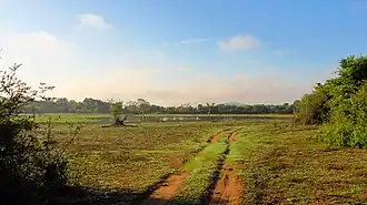 There is a possibility that wild animals might catch diseases by coming into contact with domestic cattle, which are released to the park's grasslands by the villagers.[4] Wild animals have to compete with these cattle as they have occupied the grazing lands and water pools. These cattle also damage the park's electric fence. Illegal logging is a major threat and preventing it has been a difficult issue. Elephants damage the properties of the villagers and fatal attacks on them have been reported from the park. An elephant transit home is being proposed in the Wasgamuwa National Park.[8] Environmentalists raised concern over proposed resettlement of displaced people from the construction of Moragahakanda reservoir.[9] It is suggested that this resulted in escalating the elephant-human clash.[10]