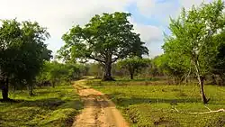 Wasgamuwa National Park exhibits one of the highest biodiversity among the protected areas in Sri Lanka.[1] More than 150 floral species have been recorded from the park. Cryptocoryne walkeri and Munronia pumila are two plants with economic value. Reservoirs and riverine forests support a large number of fauna species. The forest consists of several layers. Chloroxylon swietenia, Manilkara hexandra, Elaeodendron glaucum, Pterospermum canescens, Diospyros ebenum, Holoptelea intergrifolia, Pleurostylia opposita, Vitex altissima, Drypetes sepiaria, and Berrya cordifolia are dominant trees in the emergent layer. Polyalthia korinti, Diplodiscus verrucosus, Limonia acidissima, Cassia roxburghii and Strobilanthes stenoden are common in other strata. Some 1,700 years old tamarind tree, "Oru Bendi Siyambalawa" (Sinhala for Canoes-Moored-Tamarind) was situated in the park.[6]