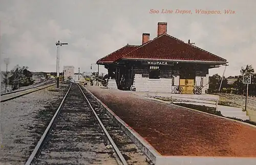 Waupaca Railroad Depot originally called the Wisconsin Central Depot[3] a/k/a Soo Line Depot. was built in 1907 for the Wisconsin Central Railway and is located in Waupaca, Wisconsin. The former Soo Line Railroad depot is one of Waupaca's historical landmarks. The building was purchased by the Waupaca Historical Society in 2004, and restoration of the building and site began.[4] In 1998 the building's site was recognized by the Wisconsin Historical Society.[3]