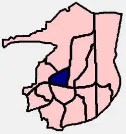Crawley was designated as a New Town in January 1947 after the New Towns Act 1946 identified it as a suitable site for one.[16][17] Crawley Development Corporation was formed, led by the architect Thomas Bennett, and planner Anthony Minoprio provided a master plan for the town's development.[18] He proposed a double ring of nine neighbourhoods surrounding an extended town centre; West Green was to be one of the inner ring of four, and the first to be built.[19] By 1949, when building work started, West Green's population was about 2,000—mainly concentrated in the area between Ifield Road and the railway line—and the Development Corporation had to consider how to fit new development around this.[20]