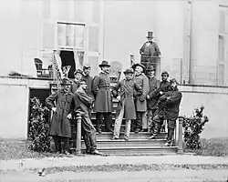 The house was abandoned during the evacuation of Richmond on April 2, 1865 and within twelve hours had been seized intact by soldiers from Major General Godfrey Weitzel's XVIII Corps. President Abraham Lincoln, who was in nearby City Point (now Hopewell, Virginia), traveled up the James River to tour the captured city, and visited Davis' former residence for about three hours – although the President only toured the first floor, feeling it would be improper to visit the more private second floor of another man's home. Admiral David Dixon Porter accompanied Lincoln during the visit. They held a number of meetings with local officials in the house, including Confederate Brigadier General Joseph Reid Anderson, who owned the Tredegar Iron Works.