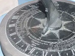 The Whitehurst & Son sundial was produced in Derby in 1812 by the nephew of John Whitehurst.[1] It is a fine example of a precision sundial telling local apparent time with a scale to convert this to local mean time, and is accurate to the nearest minute. The sundial is now housed in the Derby Museum and Art Gallery.