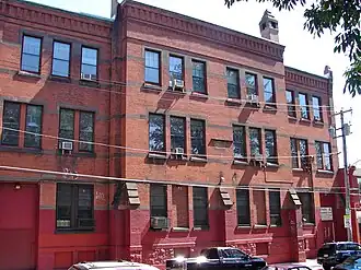 Designed by Addison Hutton and built between 1879 and 1880, this historic school is a three-story, four-bay, brick building that sits on a stone basement. Created in the Queen Anne style it has two central bays that slightly project and features brownstone sills and lintels and brick piers with brownstone tops.[2]