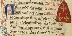 - ^ Chronica Maiora – Royal MS 14 C VII, (The Historia Anglorum, or "History of the English", by Matthew Paris (d. 1259), a history of England covering the years 1070–1253. Begun in 1250 and perhaps completed around 1255) arms of William III de Cantilupe, folio 165v [1]
