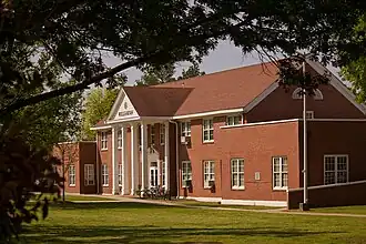 Williamson Hall is a historic academic building on the campus of Arkansas Tech University in Russellville, Arkansas. It is located just north of West L Street and west of North El Paso Street. It is a two-story brick building with Colonial Revival features, built in 1940 with funding support from the National Youth Administration. It is distinguished by its Greek temple pavilion on the front facade, supported by six Doric columns. The building was named for Marvin Williamson, who was the first Director of Bands at Arkansas Tech; as well as the first student to enroll at the school. It houses classrooms and faculty offices.[2]