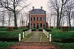 Between Appingedam and Wirdum lie the bordering estates of Rusthoven and Ekenstein, the latter of which currently belongs to the municipality of Appingedam. Both of the estates are characterised by a manor-like building known as a Borg (castle), built in 1648 (Ekenstein) and 1686 (Rusthoven). The estates, lying next to the Damsterdiep, offered easy trade access and a large brickyard was built in the early 19th century, the ruins of which - including an iconic 30-metre chimney - still stand. Although the 'Borgen' are privately owned, the interconnected estate is open to the public as a park.