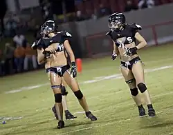 LFL players with experience in track and field competitions noted that the typical LFL uniform is comparable to other uniforms, with Elizabeth Govrick of the Minnesota Valkyrie stating she "ran track and I was wearing, you know, stuff if not close to almost smaller than what I'm wearing out on the football field. You take beach volleyball, you take volleyball, you take other sports where it's pretty much the same thing."[42] Adrian Purnell of the Jacksonville Breeze said that the outfits were only for marketing purposes.[43] Heather Furr, a quarterback for the Chicago Bliss said "I think with little girls watching the game ... if they can see past the uniform and see us as role models, then that's what I want."[41] Abbie Sullivan of the Cleveland Crush stated, "Just because we play in the LFL does not mean we promote promiscuity. We are smart females. We are athletes who take care of our bodies. We are the total package." Similarly, Toledo Crush player Marija Condric stated, "Everyone is entitled to their own opinion. Sit down and watch. You'll forget what we are wearing and you will be thinking about how hard that girl got hit on that last play."[44]